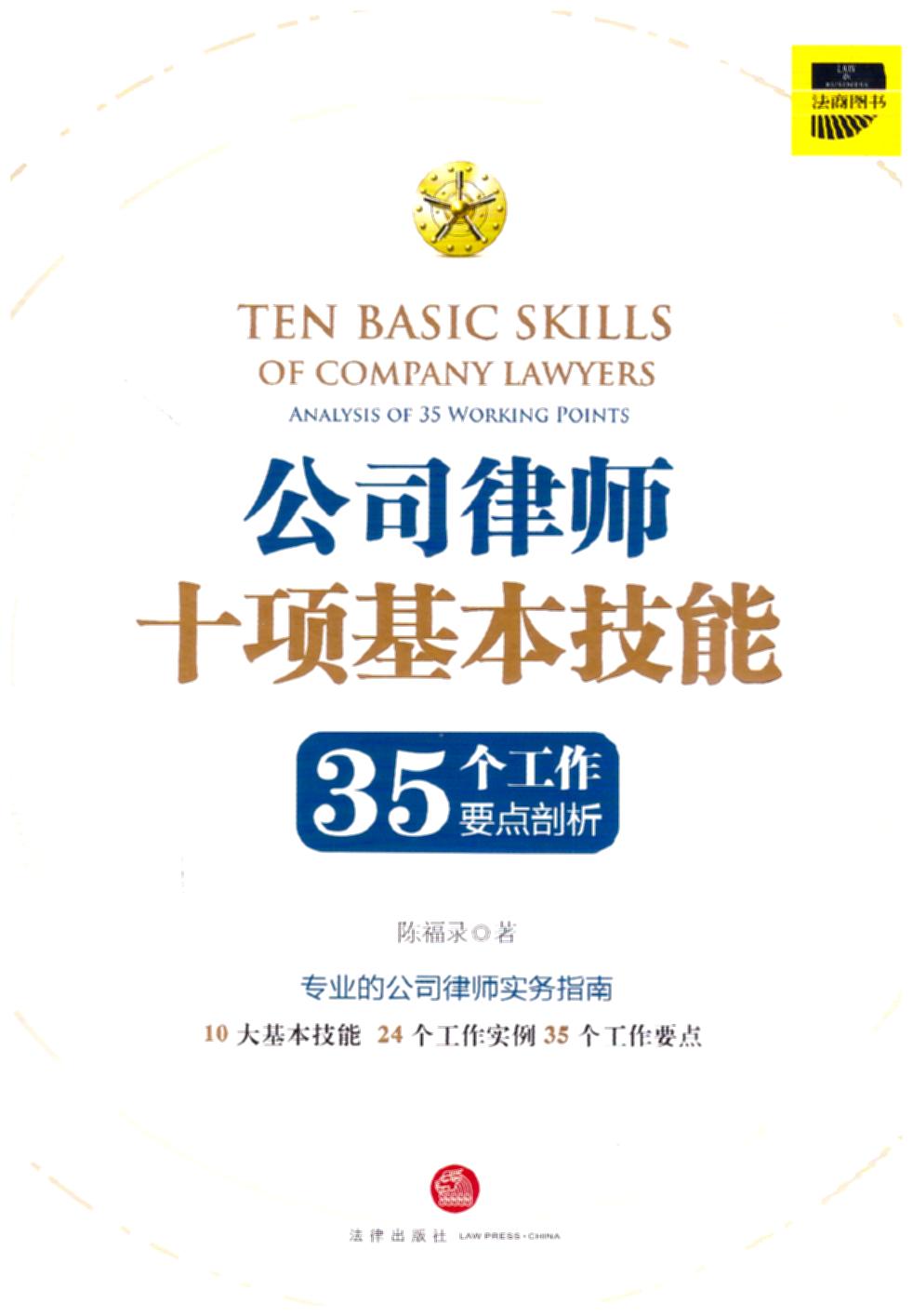 摘自:《公司律師十項基本技能:35個工作要點剖析》,法律出版社2017年8月出版,內容簡介:主要介紹公司律師的基本技能,包括如何累積知識、如何解釋咨詢、如何開展審查、如何化解糾紛等十個方面,作者分享總結了自己多年的心得與感悟,使讀者以較小財務成本在短時間內獲取公司律師執業的基本技能,從而少走彎路,快速成長。同時,《公司律師十項基本技能》的內容不僅對公司律師有幫助,對從事其他法律職業的青年法律人同樣具有較強的參考價值和意義。