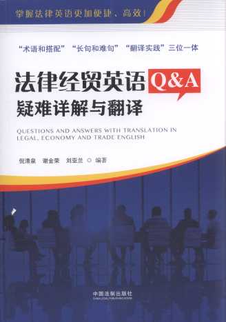 《法律經貿英語Q&A---疑難詳解與翻譯》對于法律經貿英語的掌握、翻譯和實踐具有創新性特色。1)列出了法律經貿英語中的常見重、難點術語或短語,依據所在語境進行分析,給出漢語譯文,最后提供更多例句,使讀者不僅理解術語,懂得如何翻譯,還能舉一反三加以運用。2)提供了非常充分的長、難句子,并從主體結構、附加成分、重、難點詞匯和短語等方面加以解析和翻譯,給讀者提供一個思路清晰、證據確切、背景知識豐富的分析和譯文?此坪荛L且無從下手的句子,經過編著者的逐步厘清(包括長難句的主體結構分析、重難點詞匯和短語講解以及重難點附加成分的分析等)句子之各部分重、難點,使各成分間的關系一目了然,含義一清二楚,難句不再難。3)學習的目的在于應用。經過上述詞、句及翻譯階段的學習,讀者已掌握一定技巧,會產生一種強烈的、躍躍欲試的翻譯沖動。該書最后提供了100個常見長、難句子,供讀者翻譯實踐,也使該書形成一個結構完整的整體。