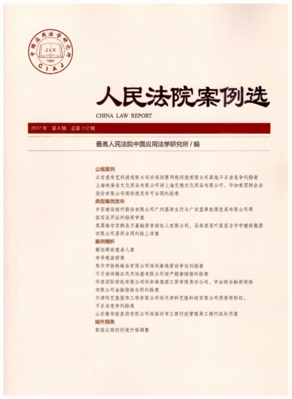 - 書名:人民法院案例選(2017年第6輯)(總第112輯)