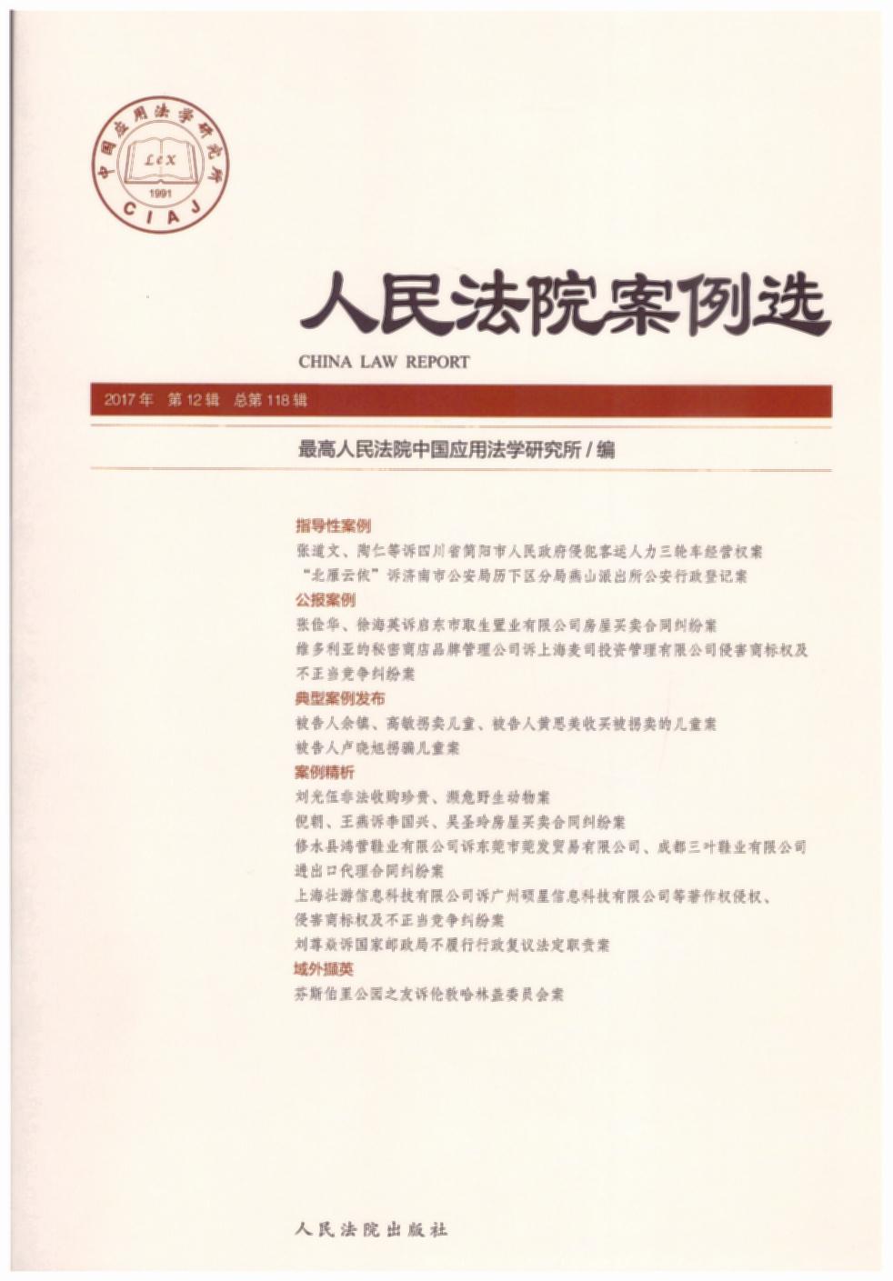 • 人民法院案例選2017年第12輯(總第118輯)