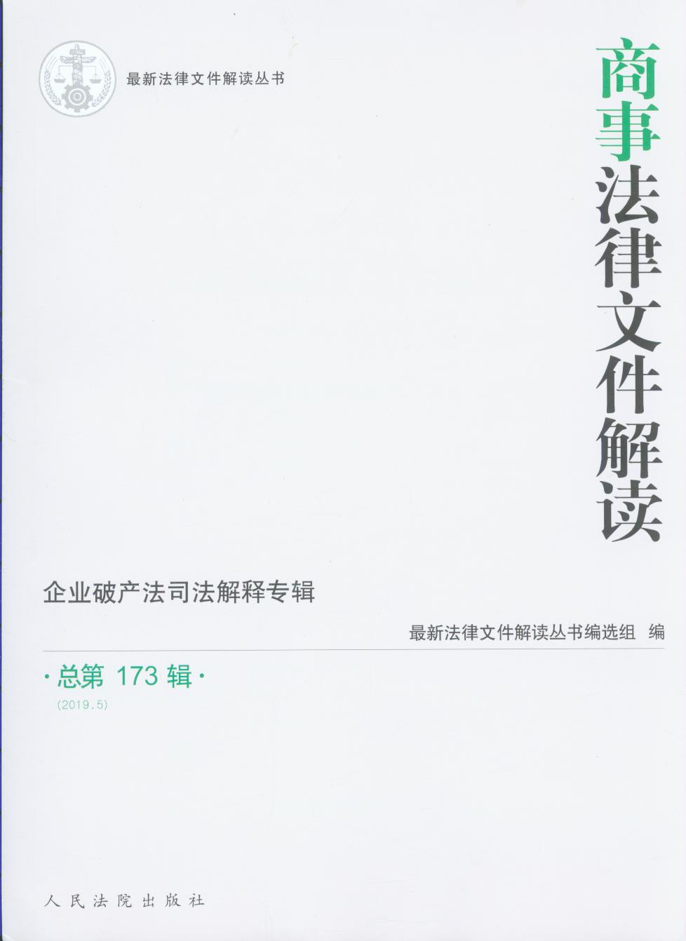 • 商事法律文件解讀:企業破產法司法解釋專輯(2019年第5輯,總第173輯)