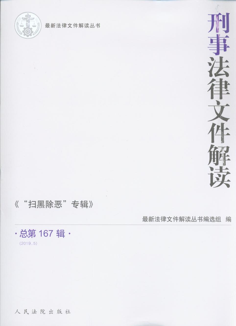 - 書名:刑事法律文件解讀:“掃黑除惡”專輯(2019.5總第167輯)
