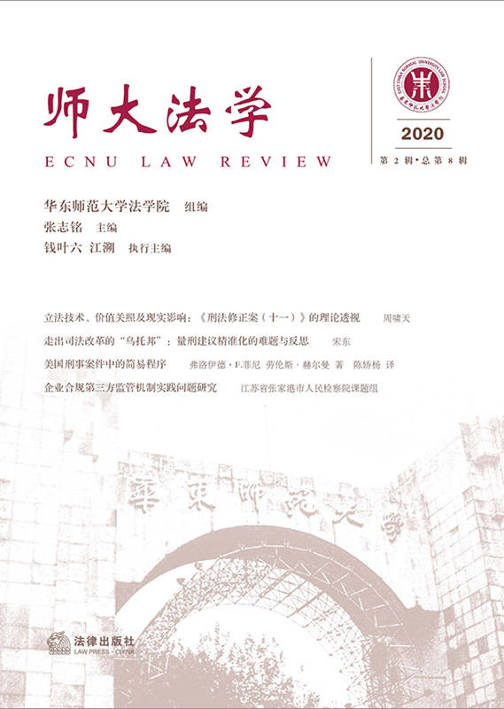 本輯《師大法學》共有三個欄目。“《刑法修正案(十一)》的理解與適用”欄目共刊登了三篇關于《刑法修正案(十一)》的佳作。“刑事訴訟與司法制度”欄目刊登了六篇論文,主題涉及中外刑事訴訟與司法制度的諸多重要問題。“企業合規與不起訴”欄目刊登了兩篇論文和一篇綜述。